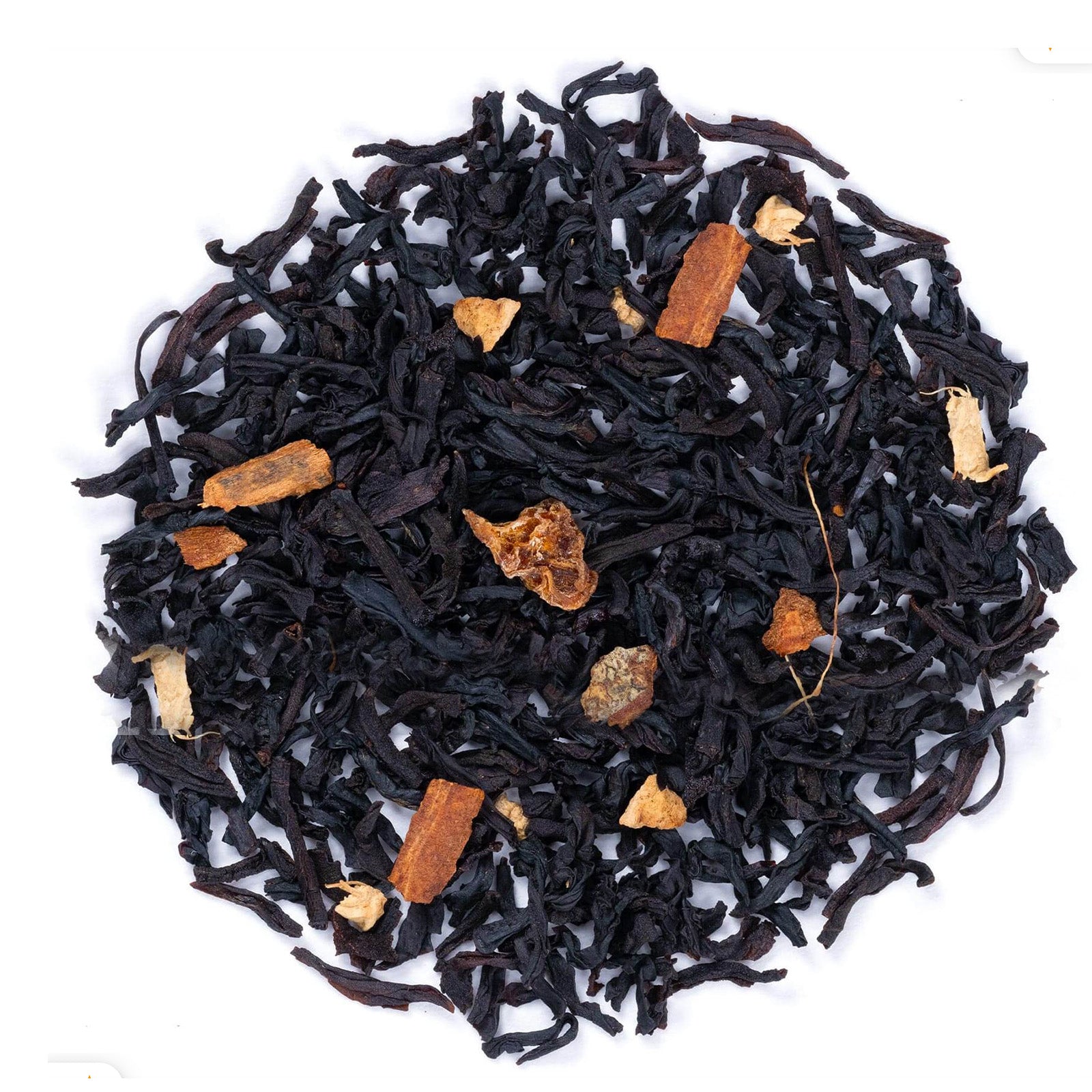 Hexmas Witch Tea tastes like playful holiday mischief. Rich black tea meets warm gingerbread sweetness, bright orange, and a kick of cinnamon and ginger. It is cozy, a little spicy, and perfect for brewing winter magic on your own terms.