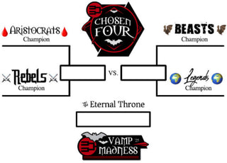 Welcome to Vamp Madness, where four vampire clans battle for supremacy in a high-stakes voting bracket! Will the Aristocrats reign with their power and grace, or will the Beasts tear through the competition? Can the Legends prove their immortality, or will the Rebels rise and overthrow them all? Cast your votes and decide who rules the night!